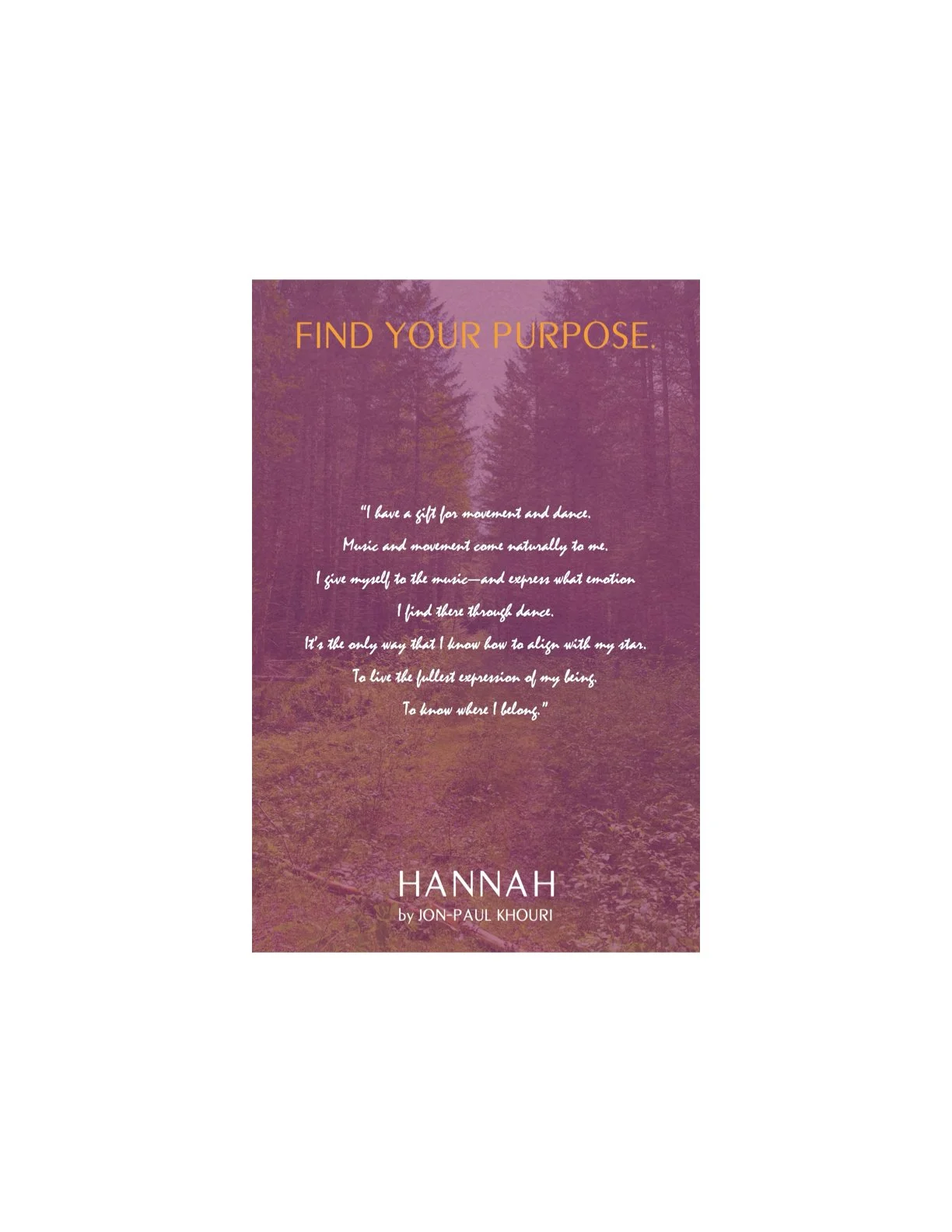HANNAH (Signed) $39.99 Add To Cart Added! HANNAH $29.99 Add To Cart Added! FIND YOUR PURPOSE: Art Print & Bookmark (Set) $9.99 Add To Cart Added! FIND YOUR PURPOSE: Art Print/Postcard $6.99 Add To Cart Added! FIND YOUR PURPOSE: Bookmark $3.99 Add To Cart Added!